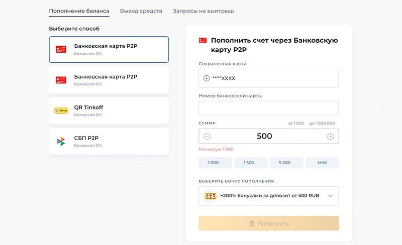 Все расчеты на азартной платформе производятся в рублях. В финансовом разделе представлены лишь российские платежные системы.